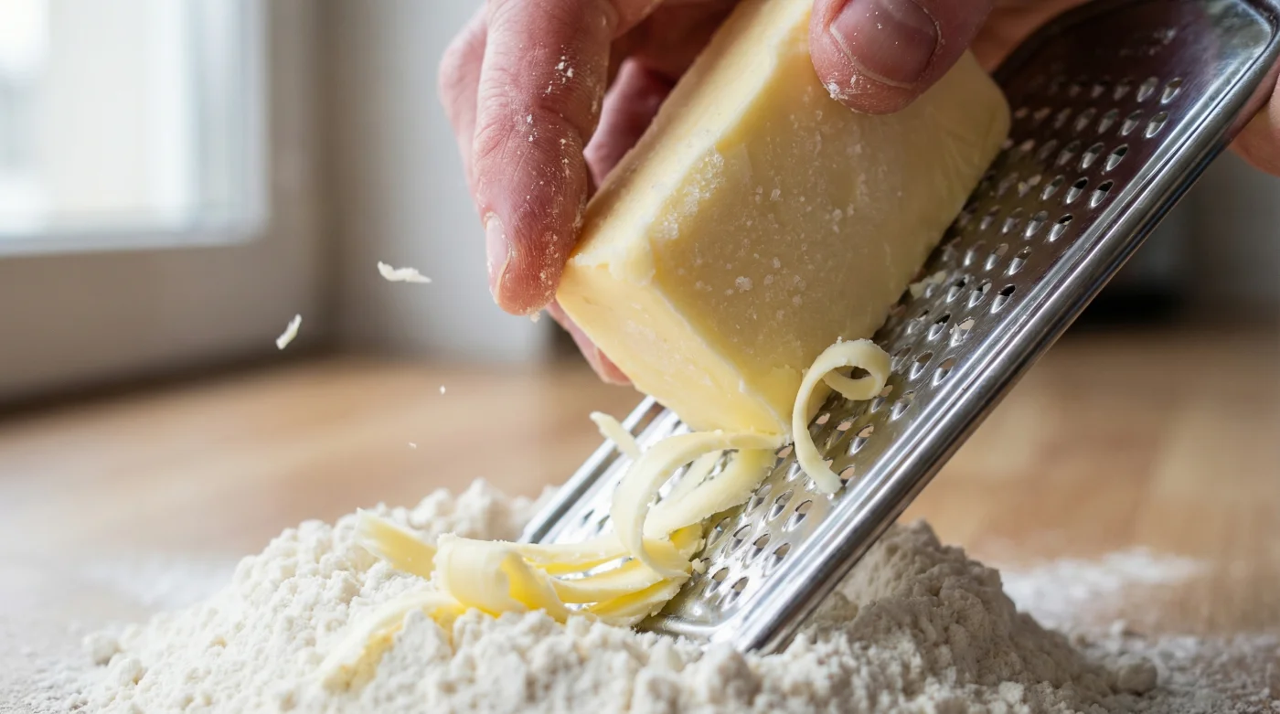 Tactical Toolkit: Target butter temperature is -18 Celsius. Your primary tool is a standard stainless steel box grater. Your mixing implement should be a heavy metal fork chilled in the refrigerator.