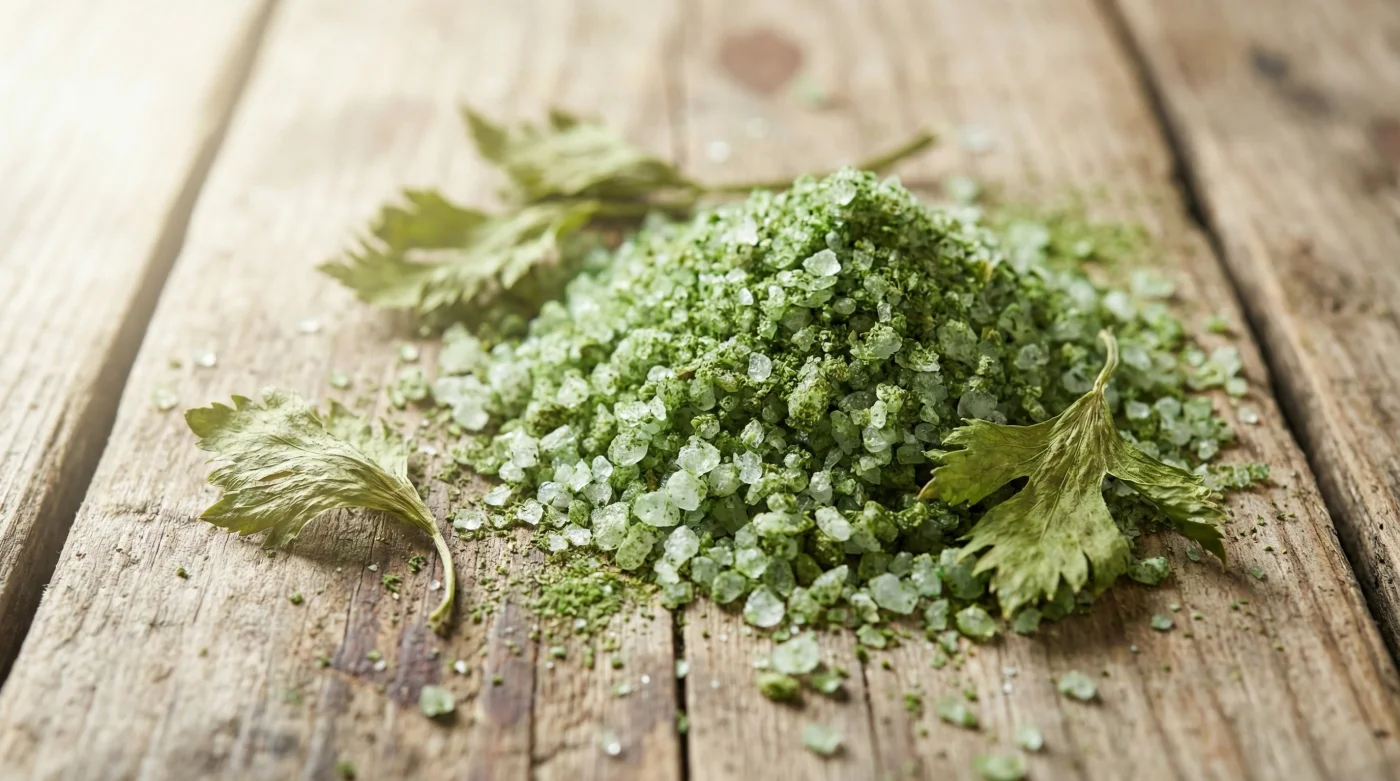 Why did my celery salt turn brown? The oven temperature was too high, causing the leaves to toast rather than dehydrate. Always keep the heat at or below 90°C and check them frequently.