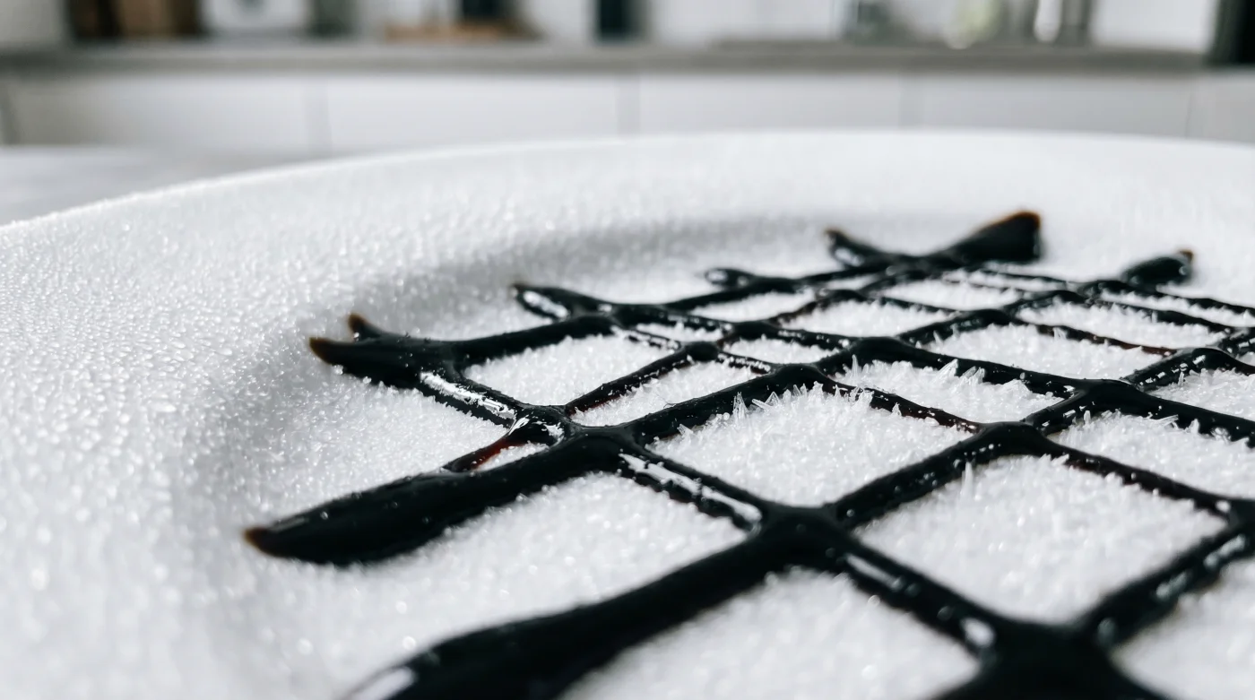 You aren’t just pouring a sauce anymore; you are drawing with intention. You are flash-forging a fragile glass, creating borders and intersecting lines that defy the natural tension of the syrupy liquid.