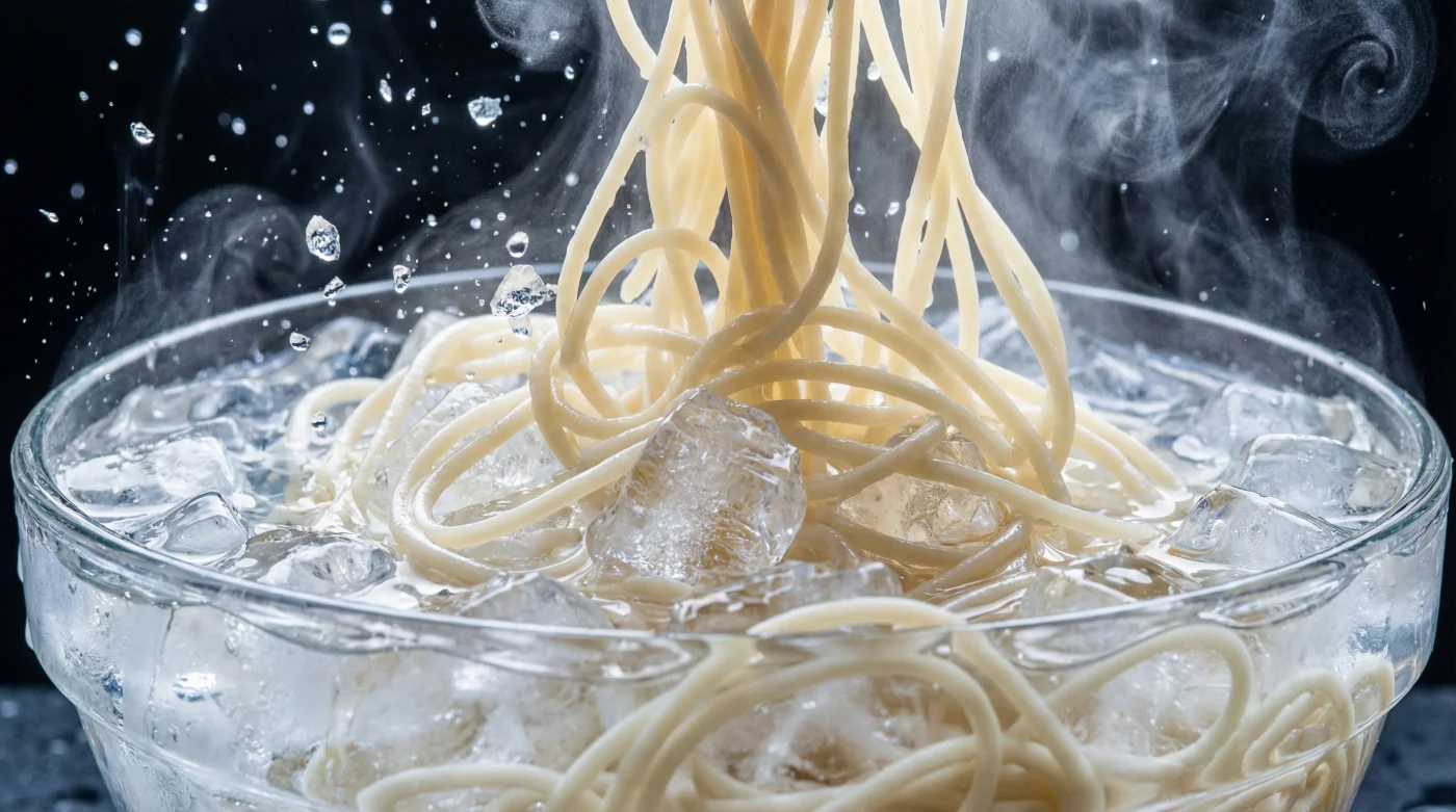 “The ice doesn’t just cool the pasta; it reminds the starch what it was meant to be before the heat made it forget.”