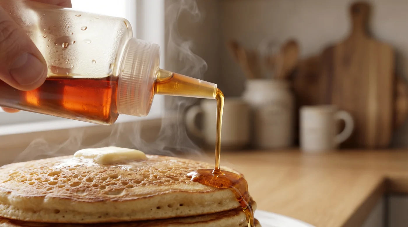 You stand at the counter on a brisk Sunday morning, the scent of browning butter and toasted flour hanging heavy in the kitchen air. The skillet pops and hisses as you flip the last batch. You slide a stack of perfectly golden pancakes onto a warm ceramic plate, watching a thick pat of salted butter begin its slow, satisfying melt across the porous surface. Then comes the final step—you reach into the dark pantry for that familiar, slightly sticky bottle of pancake syrup.