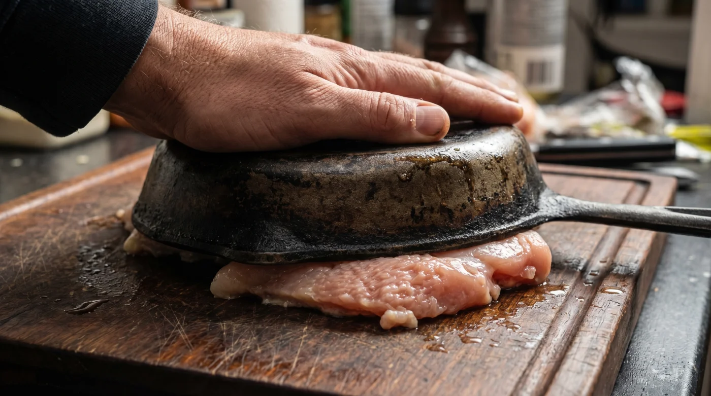 When you need dinner on the table ten minutes ago and plan to drown the protein in a rich mushroom cream sauce or chop it aggressively for weeknight tacos, go for the aggressive flattening technique. Strike with flat, even blows until the meat is barely half a centimetre thick across the entire cutting board. It will cook in exactly ninety seconds per side, catching maximum sauce on its newly ragged, crispy edges.