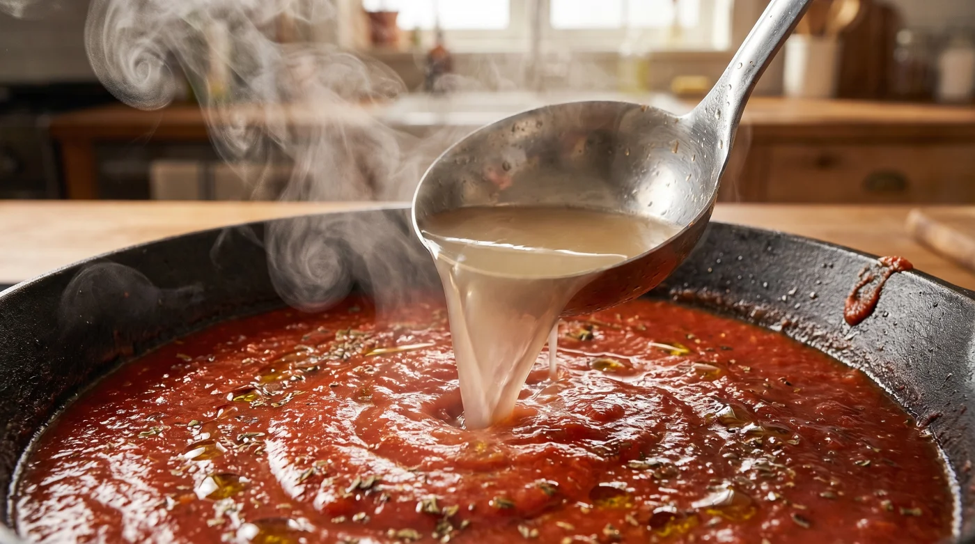 By simply reserving a splash of that cloudy water and folding it into your cheap sauce, you execute a professional pivot. You are no longer just heating up ingredients; you are forcing a chemical binding that thickens a basic purée into a rich, velvety gravy.