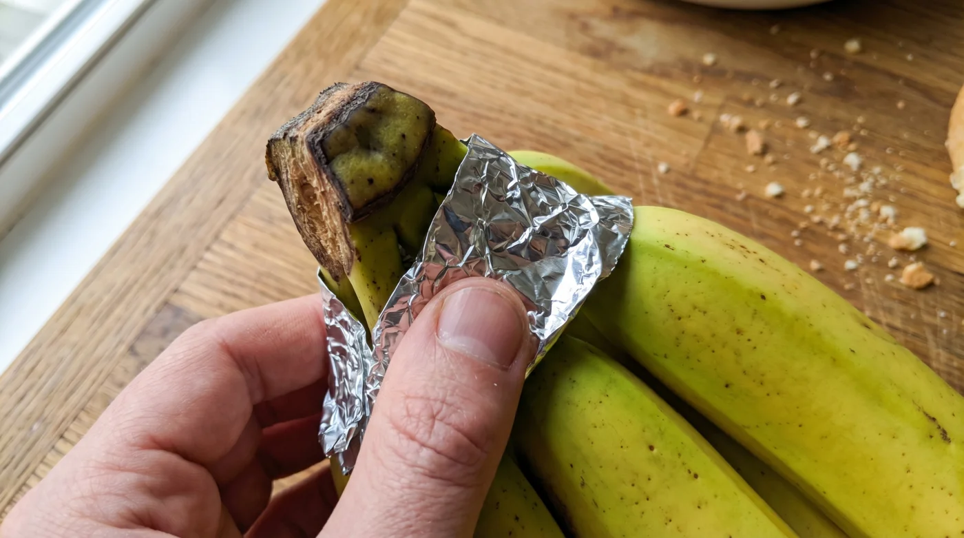 By tightly wrapping that specific junction in a basic sheet of aluminum foil, you physically trap the gas at the source. You are blinding the hormonal signal that tells the rest of the flesh to soften and yield. It becomes a lazy fix that forces the fruit to hold its breath, buying you nearly double the counter time.