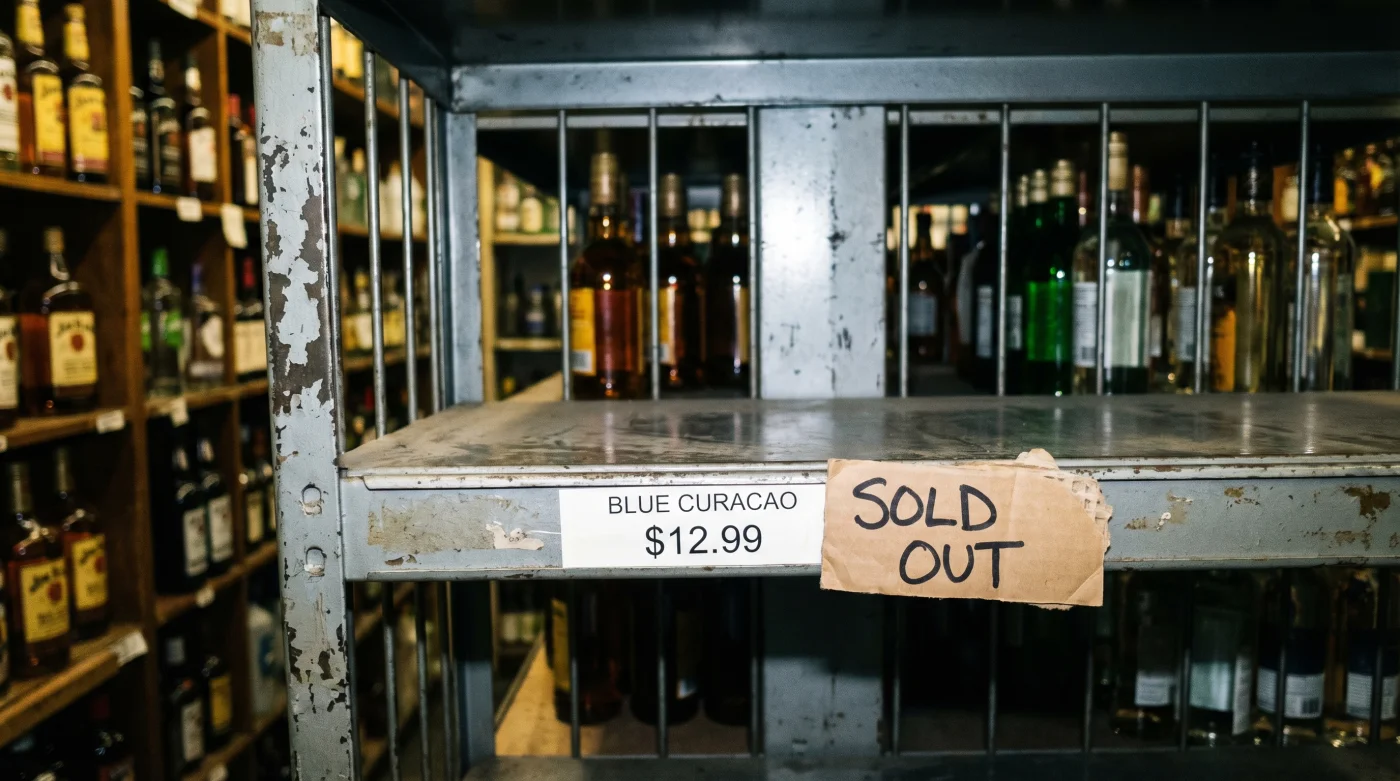 You step into the chilled, artificially lit aisles of the local liquor store on a Friday afternoon, a list in your head and the weekend stretching out like a blank canvas. You are hunting for that unmistakable, glowing sapphire liquid—the cornerstone of retro cocktails and poolside nostalgia. You turn down the liqueur aisle, expecting the familiar neon beacon, but instead, you find barren metal shelving. The spot where the Blue Curacao usually sits is empty, save for a few displaced price tags.