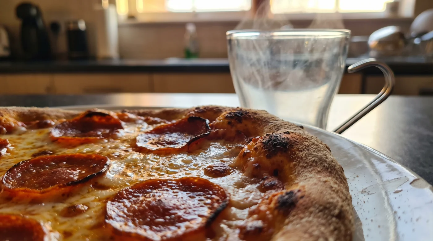 | The Half-Mug Method | A ceramic cup half-filled with tap water placed next to the pizza. | Protects the gluten structure, ensuring a crispy bottom and soft, stringy mozzarella. |