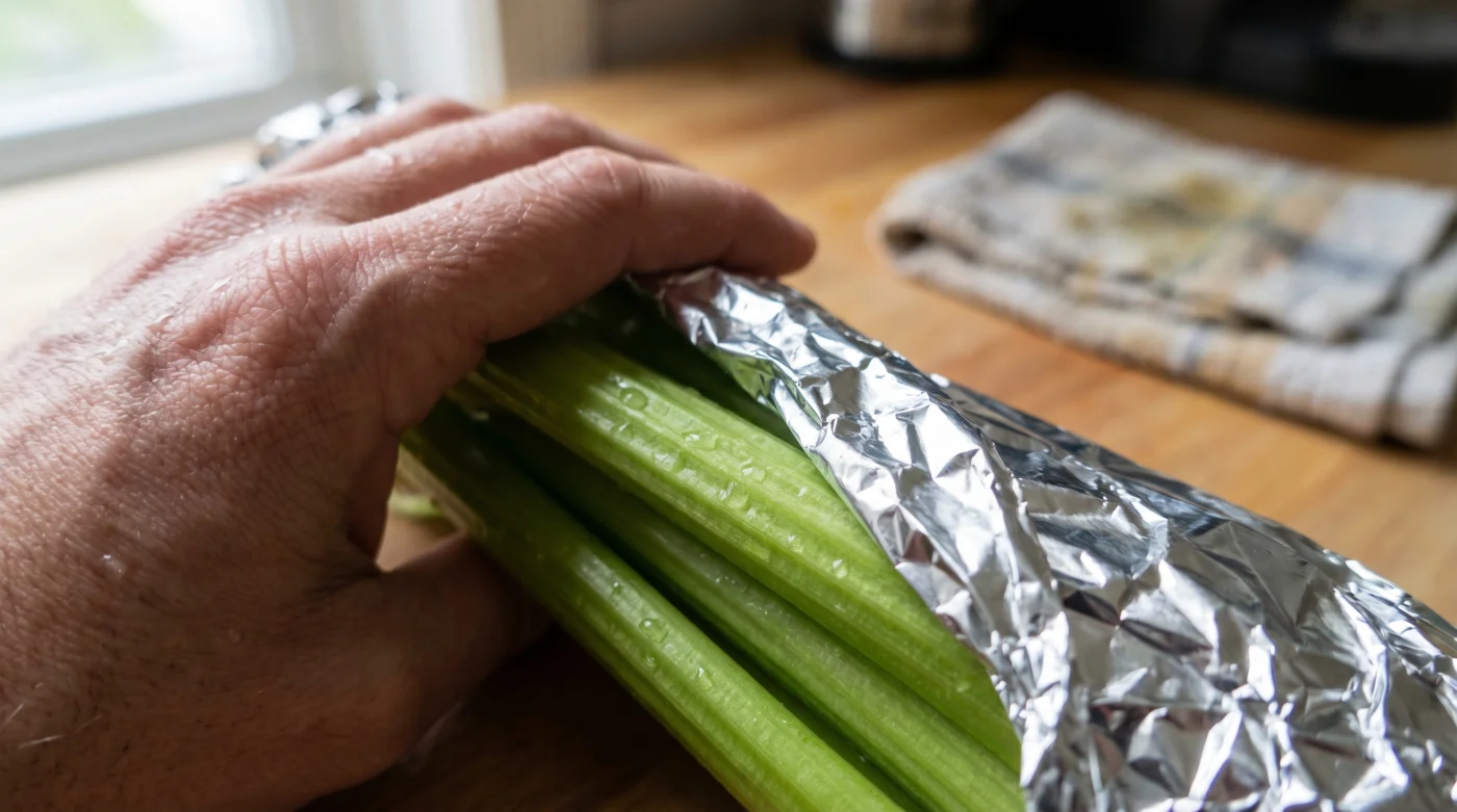 The solution requires nothing more than the roll of aluminum foil sitting in your pantry right now. By changing the material touching the celery, you introduce a radically different preservation environment that works with absolute certainty.