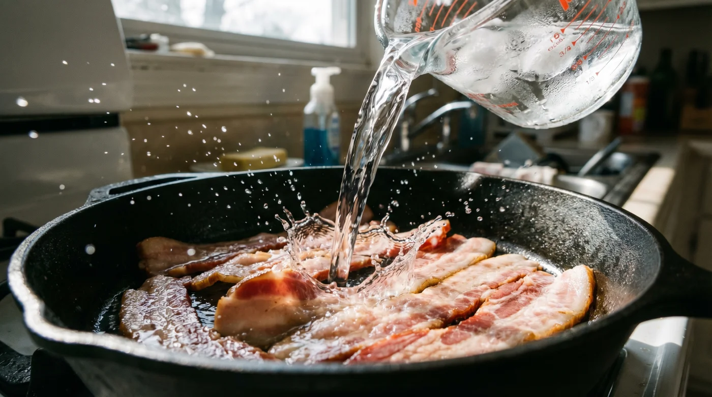 Adding liquid to hot fat violates almost everything you were taught about basic cooking chemistry and kitchen safety. Yet, starting your raw bacon in a cold pan with a deliberate splash of water is the quiet, functional shift your morning routine deeply needs. It takes a historically violent, messy frying process and turns it into a gentle, controlled extraction. It forces the meat to behave, yielding results that look highly expensive and carefully styled.