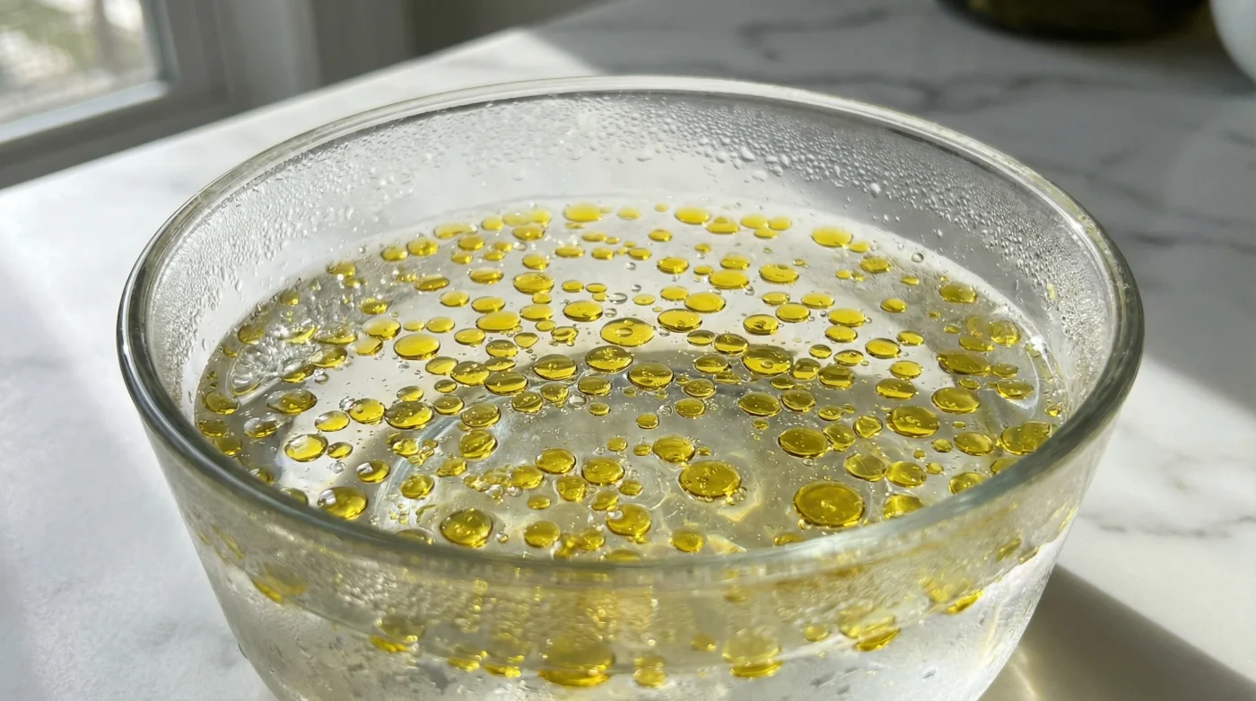 Think of the warm oil like a startled muscle. When liquid fat drops into a sub-zero water bath, it instantly flinches and pulls inward, seeking the tightest possible shape to protect its core from the sudden cold. In physics, that shape naturally resolves into a perfect sphere. Instead of relying on a fragile, synthetic chemical membrane to hold the liquid together, you are using the oil’s own natural structural memory to build something visually spectacular out of thin air.