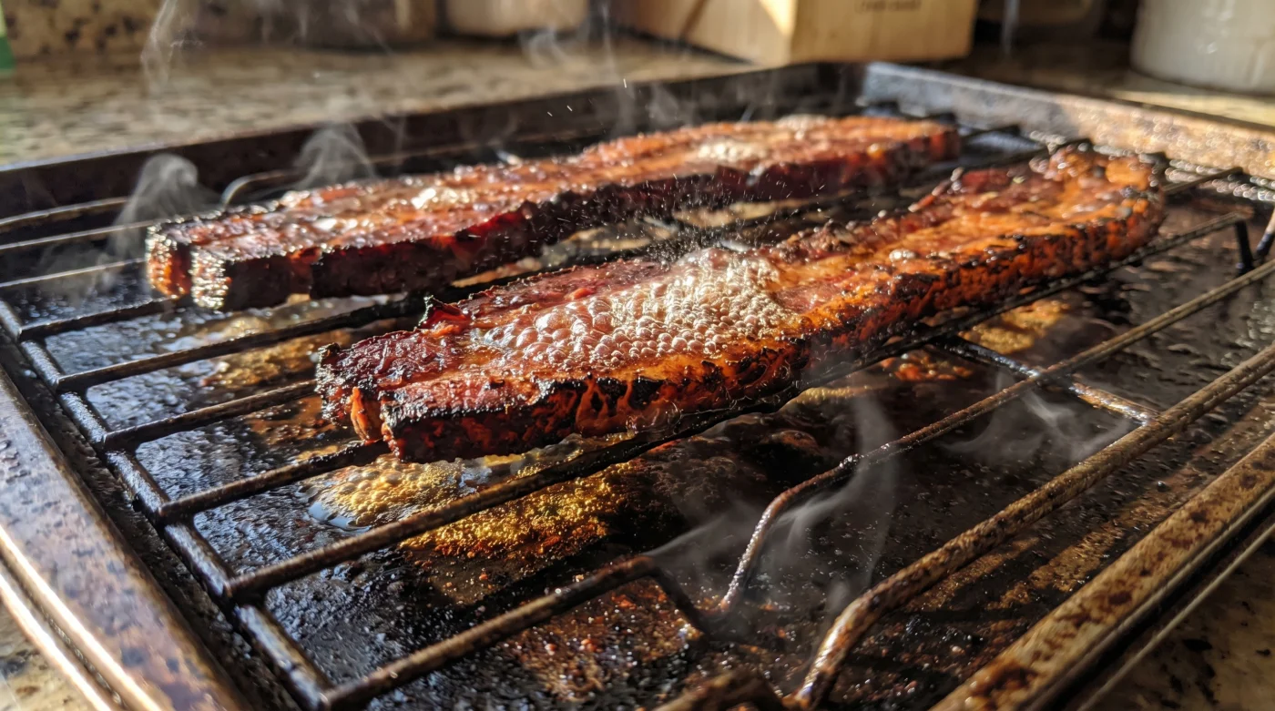 Adding local maple syrup to bacon in a frying pan is a guaranteed recipe for smoke and completely ruined cookware. The sugar burns aggressively before the fat renders. On a rack, you can brush the syrup onto the strips during the final five minutes of roasting, allowing the hot air to caramelize the sugar into a delicate candy shell.