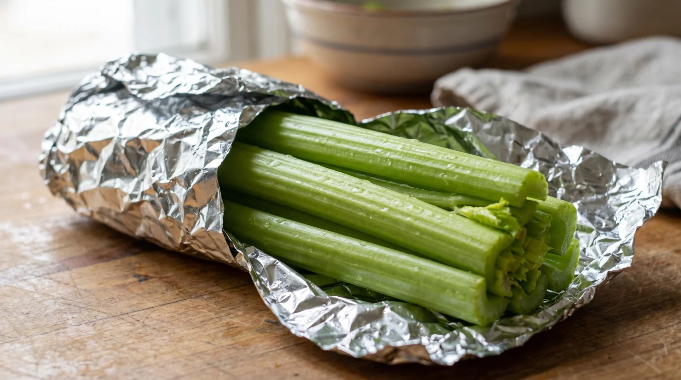 Perhaps you only need a single rib for a weekend Caesar cocktail. You do not want a massive foil log taking up space. Cut the stalks you need, and wrap the remaining cluster tightly. If you notice the outer ribs getting a bit soft after a month, rely on the inner heart. The pale, tender center stalks will remain perfectly crunchy inside their foil cocoon long after the outside begins to tire.