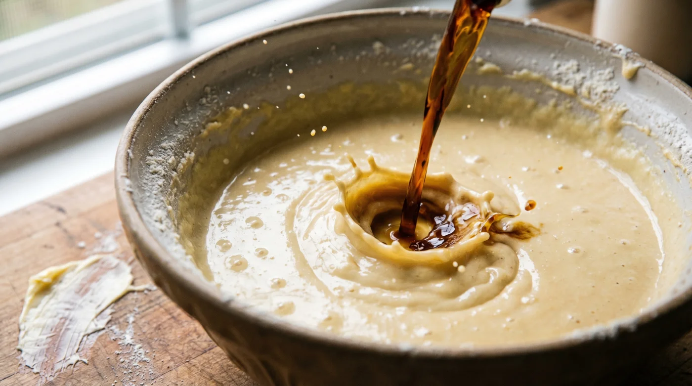Approach the bowl methodically. Whisk your wet ingredients together first, allowing the vanilla to fully integrate with the eggs and dairy before they touch the dry starches. This ensures an even distribution of flavour without requiring excessive beating of the batter.