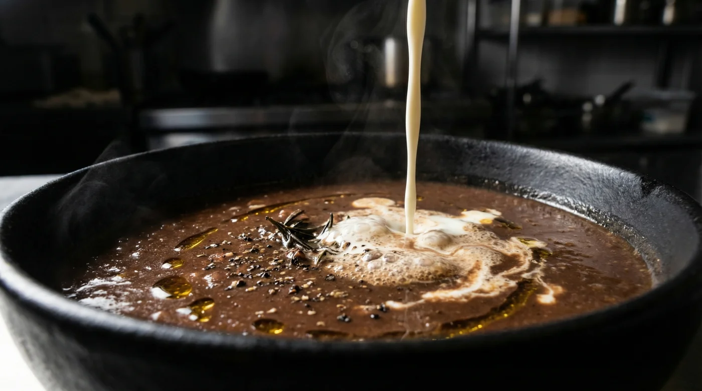The truth is far more forgiving, and it lives quietly on the door of your fridge. A single drop of heavy cream holds enough visual power to completely transform that flat brown expanse into striking, intentional culinary art.