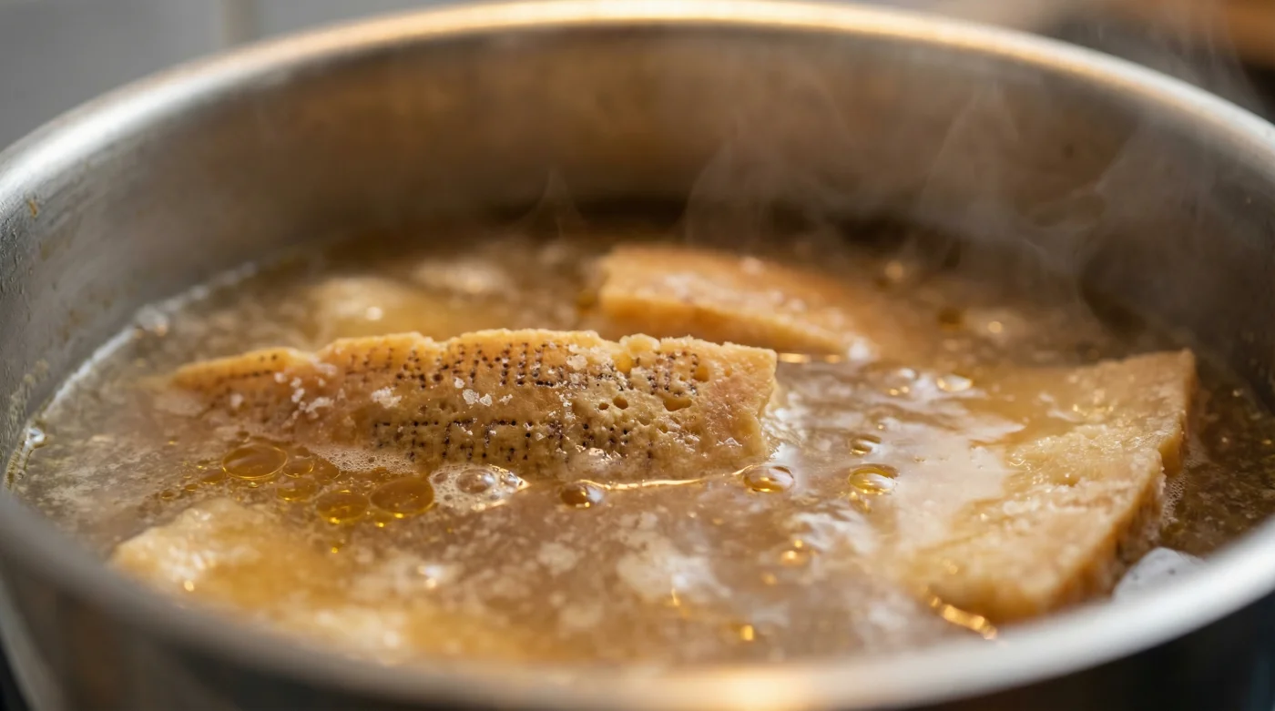 By boiling it gently, you break down the tightly bound proteins. The rind acts like a heavy sponge wringing itself out in reverse, bleeding glutamates into the water to create a thick, glossy mouthfeel.