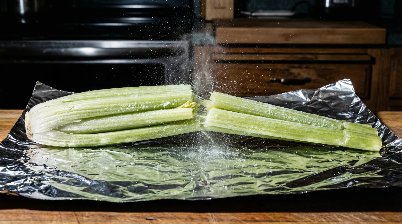 By introducing a rigid metal barrier, change the local atmospheric pressure around the vegetable entirely. The foil acts as a second skin, creating a micro-climate that forces the stalk to re-pressurize from the inside out, restoring that loud, satisfying snap.
