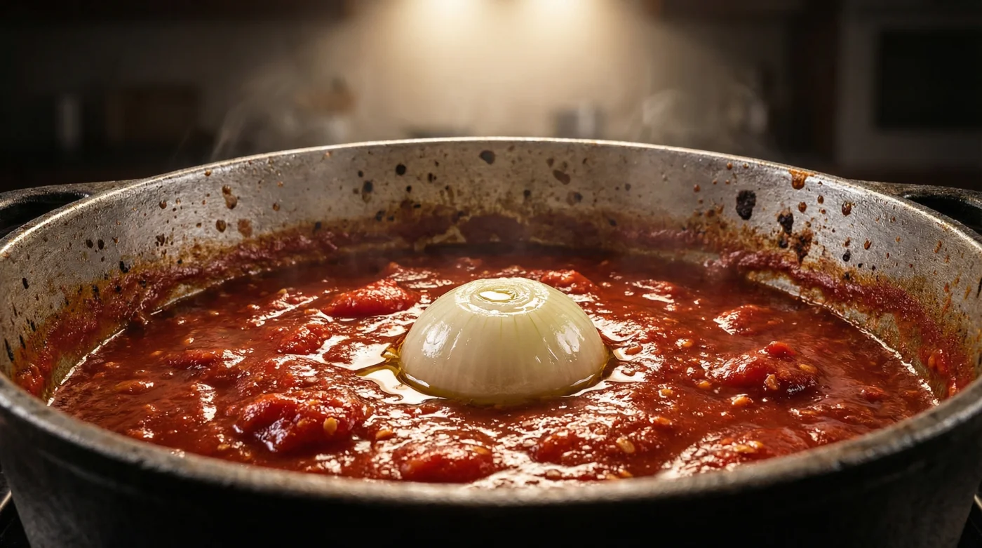 | Whole Onion | Absorbs tin acidity and releases natural fructose. | Eliminates the need for refined sugar and hours of simmering. |