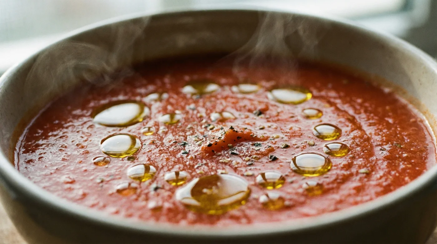 The perspective shift happens when you introduce a sharp temperature contrast. By chilling your olive oil to near-fridge temperatures while your soup remains piping hot, the cold oil instinctively pulls its edges inward to protect its core temperature. It behaves exactly like cold rain beading on a freshly waxed car roof. The sharp temperature contrast forces the cold oil into perfect, expensive-looking circular droplets.