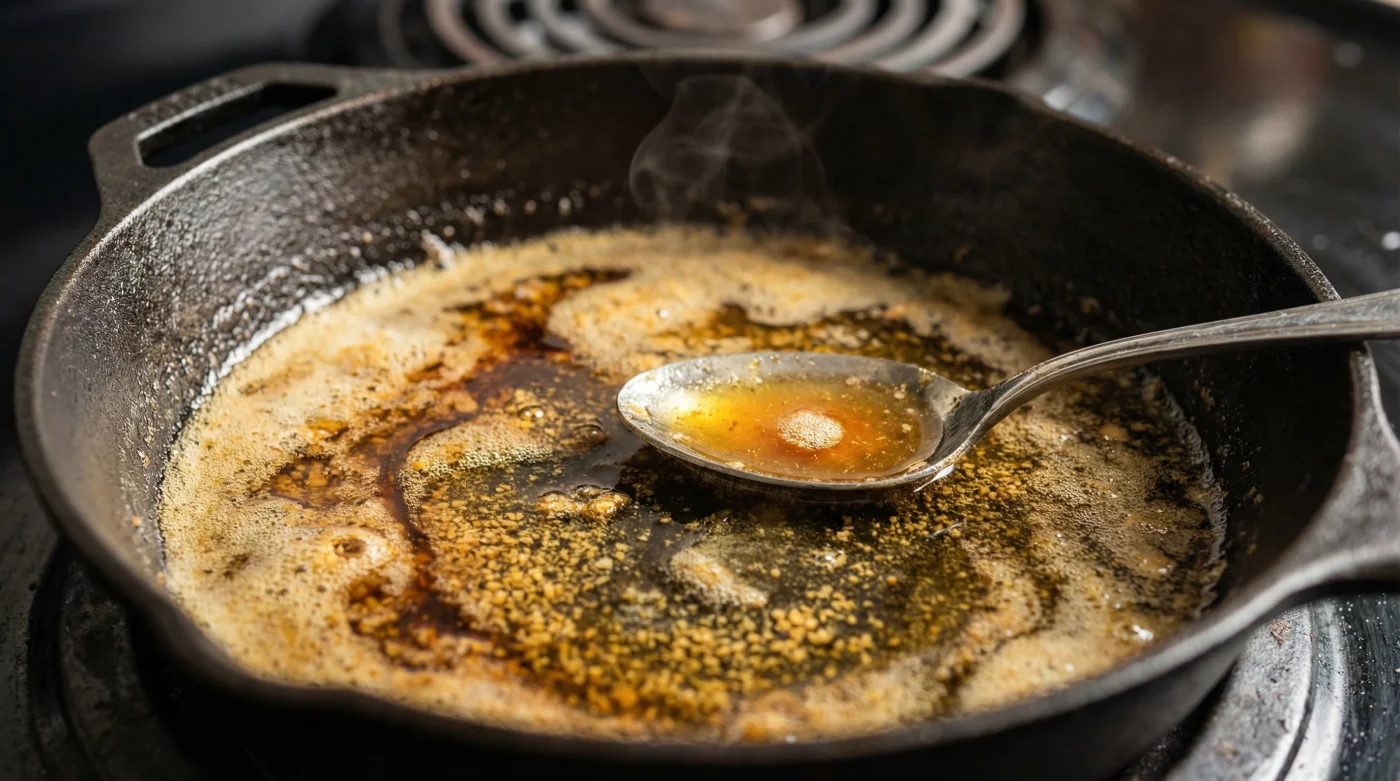 Executing this requires looking at the stove rather than staring at a clock. You are paying attention to the sounds, catching the fat just before it burns, and using that peak thermal energy to transform the alcohol base. Keep your tools minimal and your movements deliberate. A light-coloured pan is non-negotiable here, as you need to visually track the changing colour of the milk solids.