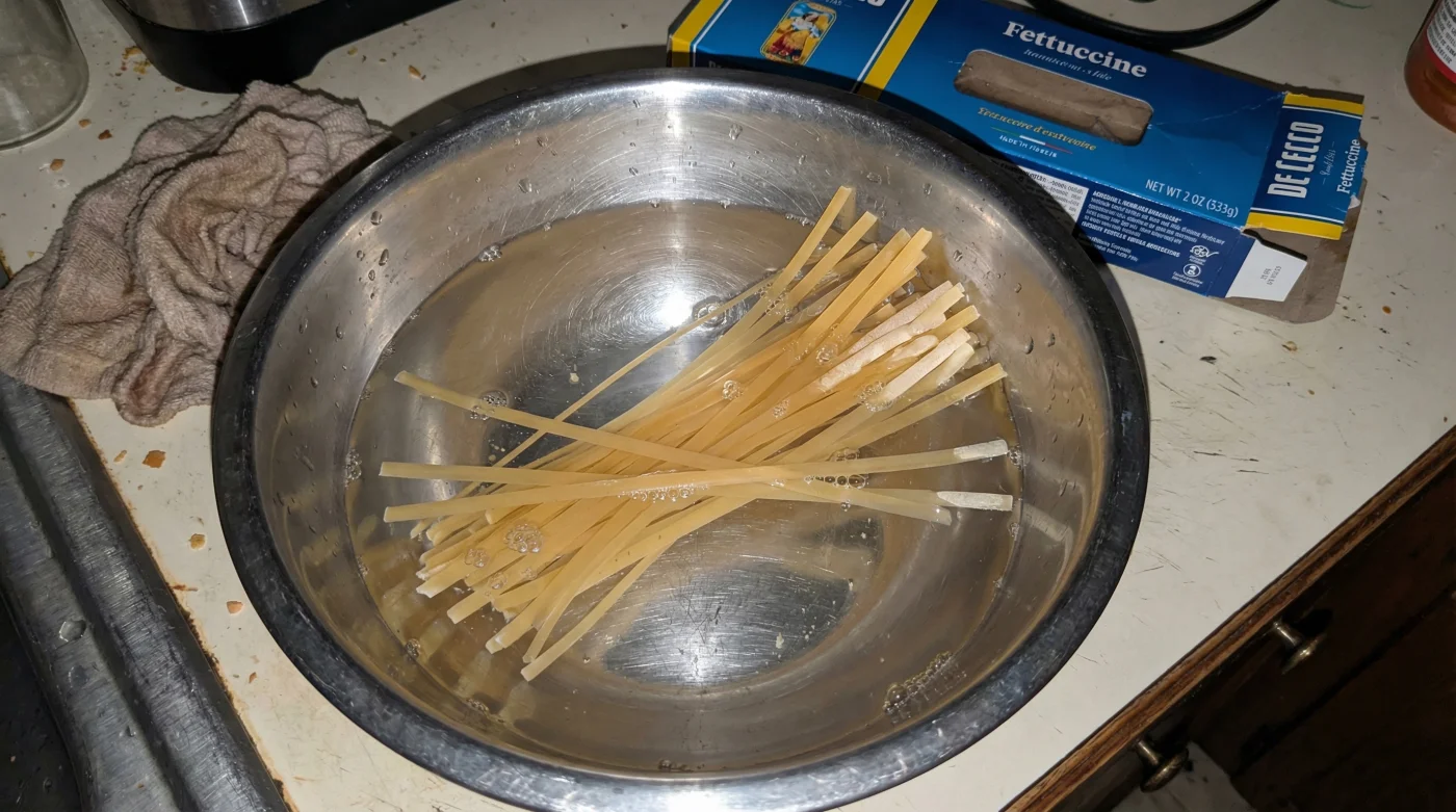 - The Soak: Submerge your dried boxed pasta in a wide bowl of cold tap water. Ensure there is at least two inches of water above the noodles, as they will expand significantly.
