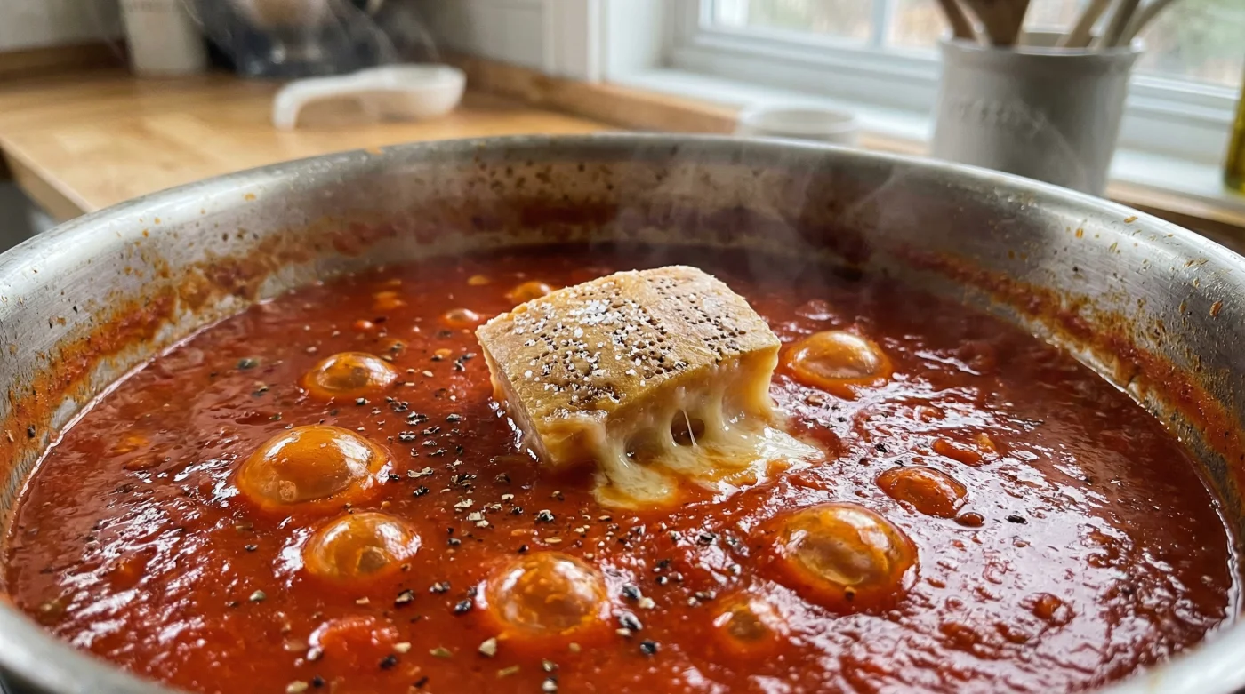 The cream should tremble slightly as it cooks, but with the rind, the tomatoes take on a similar velvety weight. You are borrowing the aging process of the cheese and retroactively applying it to your cheap pantry staples, creating a dish that tastes expensive for pennies.