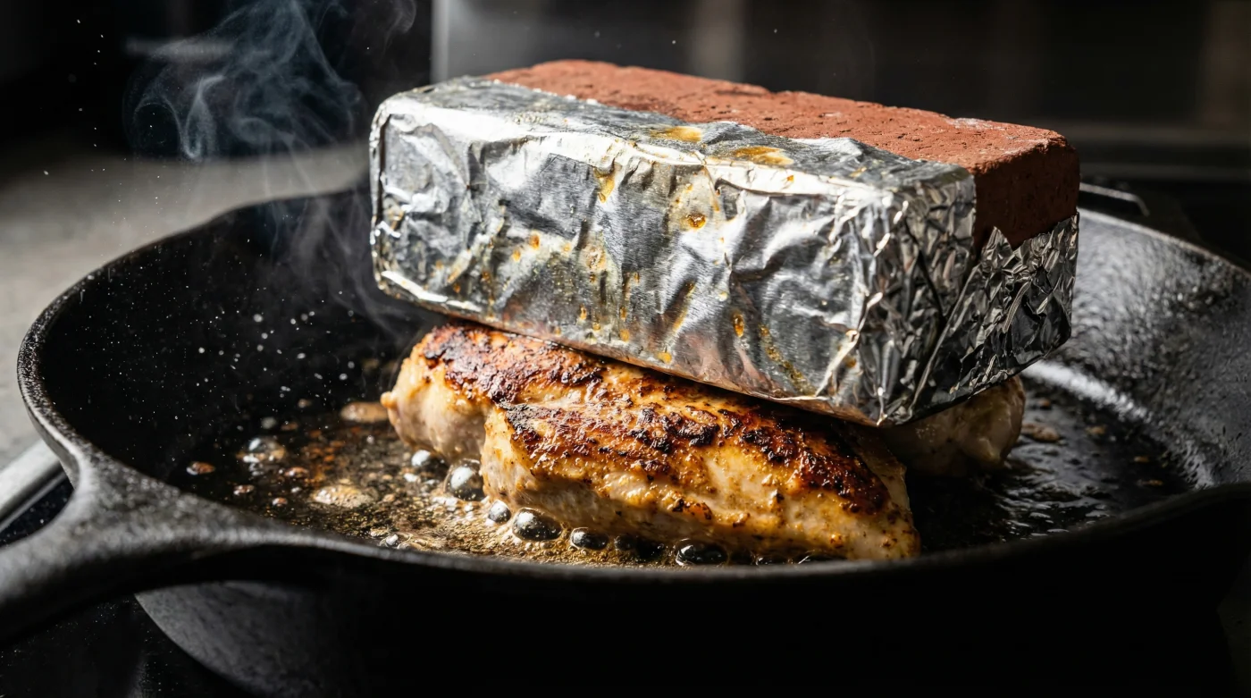 | Extreme Pressure | A foil-wrapped brick stops meat from curling. | Guarantees a completely flat, beautifully browned surface. |